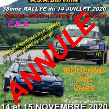 Comme chacun pouvait, s'en douter après l'intervention du président, le rallye du 14 juillet 2020 est cette fois annulé.Nous remercions les partenaires qui nous suivaient sur cette épreuve, ainsi qu...
